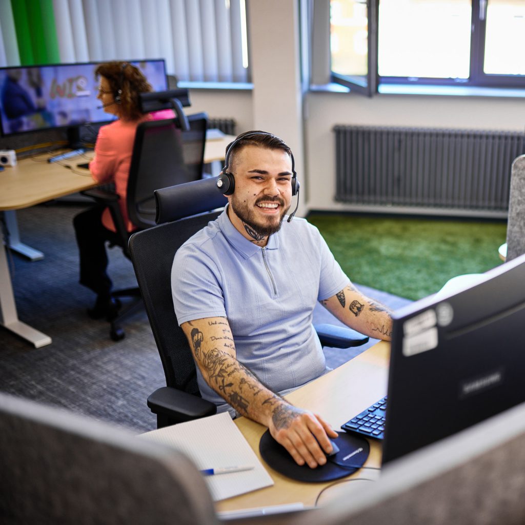 „Aber oft melden sich Kundinnen und Kunden, die im Online Banking Unterstützung brauchen, und da finde ich eigentlich immer eine Lösung, mit der am Ende alle zufrieden sind. Am glücklichsten bin ich, wenn jemand ganz verzweifelt anruft und ein Problem hat und die Person dann schnell merkt, dass ich gerne helfe, und am Ende zufrieden auflegt. Übrigens: Ein Lächeln „hört“ man auch am Telefon. Dann beruhigen sich die Leute meist schnell wieder und wir regeln das ganz entspannt.“