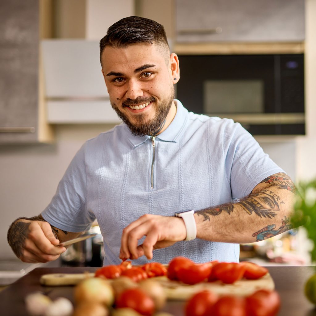 Das Gericht, das er heute kocht, macht er nicht etwa nach seinem Lieblingsrezept und es handelt sich auch nicht um ein Essen, das er schon tausendfach gekocht hat – im Gegenteil. Samuel liebt es, in der Küche zu experimentieren. Er probiert sich gerne durch außergewöhnliche Zutaten und Rezepte aus aller Welt. „Mich fasziniert, dass man aus ähnlichen Grundzutaten mit der richtigen Würze oder einer anderen Art des Zubereitens eine schier unendliche Bandbreite an Geschmäckern kreieren kann. Die will ich alle ausprobieren!“